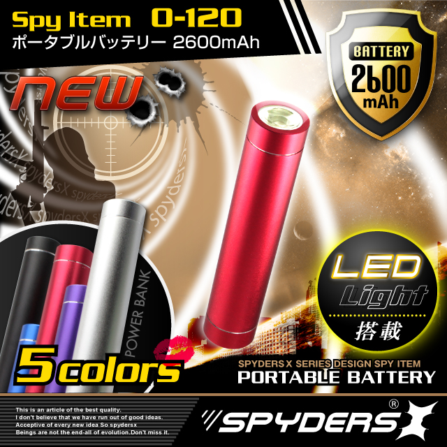 ●スパイダーズXだけのLEDライト付ポータブルバッテリー!